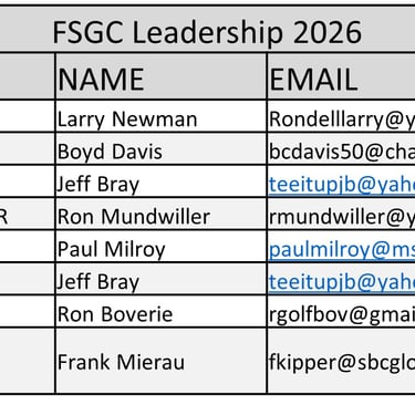 To be eligible to win Cash Prizes in the Weekly Tournaments, the Player Player needs to be a Club Member and have Played a minimum of 4 Weekly Tournaments. The Member must also have paid the Turnament Entry Fee for that days Tournament and have an SCGA/GHIN Handicap Index or a Temporary FSGC Handicap determined by the Handicap or Tournament Chairman.